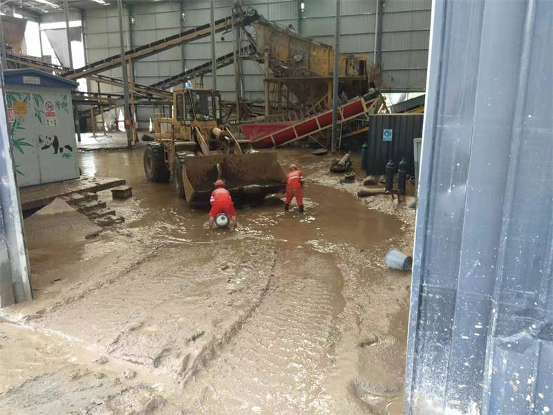 8月19日-22日受持續(xù)強(qiáng)降雨影響,雅安交建集團(tuán)云石建材公司生產(chǎn)設(shè)備全部被水浸泡,多處生產(chǎn)、生活設(shè)施被水沖毀。823日隨著天氣轉(zhuǎn)晴,本著“不等、不靠、不要,不懈怠”的精神,云石建材公司立即安排部署進(jìn)行災(zāi)后自救,為恢復(fù)生產(chǎn)做好準(zhǔn)備。