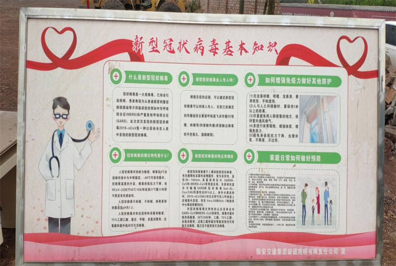 一是創(chuàng)新宣傳形式,利用公司QQ群、微信群、推送《中華人民共和國(guó)傳染病防治法》、《四川省應(yīng)對(duì)新冠肺炎疫情分區(qū)分級(jí)差異化防控指南(第二版)》、《雅安市新型冠狀病毒肺炎疫情防控工作要點(diǎn)指引》等法律法規(guī),每日持續(xù)有效的傳播疫情防控的信息,加大健康教育宣傳,引導(dǎo)職工不信謠不傳謠,營(yíng)造良好的輿論環(huán)境。二是落實(shí)責(zé)任主體,在公司、各項(xiàng)目部張貼疫情防控法制宣傳展板、懸掛宣傳橫幅、發(fā)放防控宣傳冊(cè),設(shè)立疫情防控教育專欄,向項(xiàng)目參建人員宣講疫情防控知識(shí),做好疫情群防群治工作,營(yíng)造濃厚的防控宣傳氛圍。三是精準(zhǔn)發(fā)力,組織已進(jìn)場(chǎng)勞務(wù)人員開(kāi)展疫情防控及復(fù)工復(fù)產(chǎn)安全教育培訓(xùn),確保項(xiàng)目復(fù)工復(fù)產(chǎn)和疫情防控工作有序推進(jìn)。