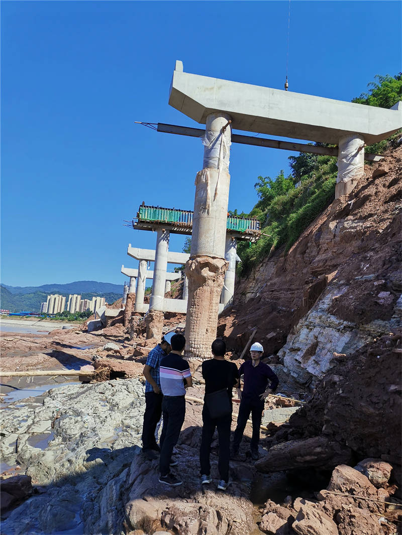 8月26日,項目公司邀請西南交通大學結(jié)構(gòu)專家到省道104線草壩至姚橋段、草壩青衣江大橋(茶地坎碼頭渡改橋)、多營青衣江大橋(搭溝漩碼頭渡改橋)等涉水工程項目進行現(xiàn)場踏勘,檢查橋梁墩臺、防護工程結(jié)構(gòu)等情況,并就相關(guān)項目安全狀況及結(jié)構(gòu)物的加固提出了專業(yè)意見。