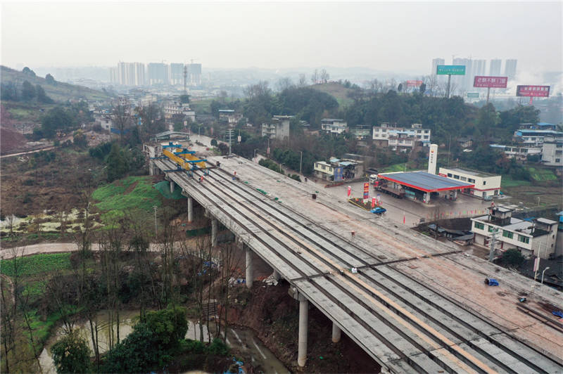 黑碾子大橋是雨名快速通道項目3座橋梁之一,另有成雅跨線大橋、丁家壩大橋。目前成雅跨線大橋已完成主橋掛籃拼裝,正在掛籃進行全封閉防護。丁家壩大橋及黑碾子大橋預制梁架設(shè)已全部完成,正在進行橋面系施工。橋梁建設(shè)有序推進,為項目如期建成通車打下堅實基礎(chǔ)。
