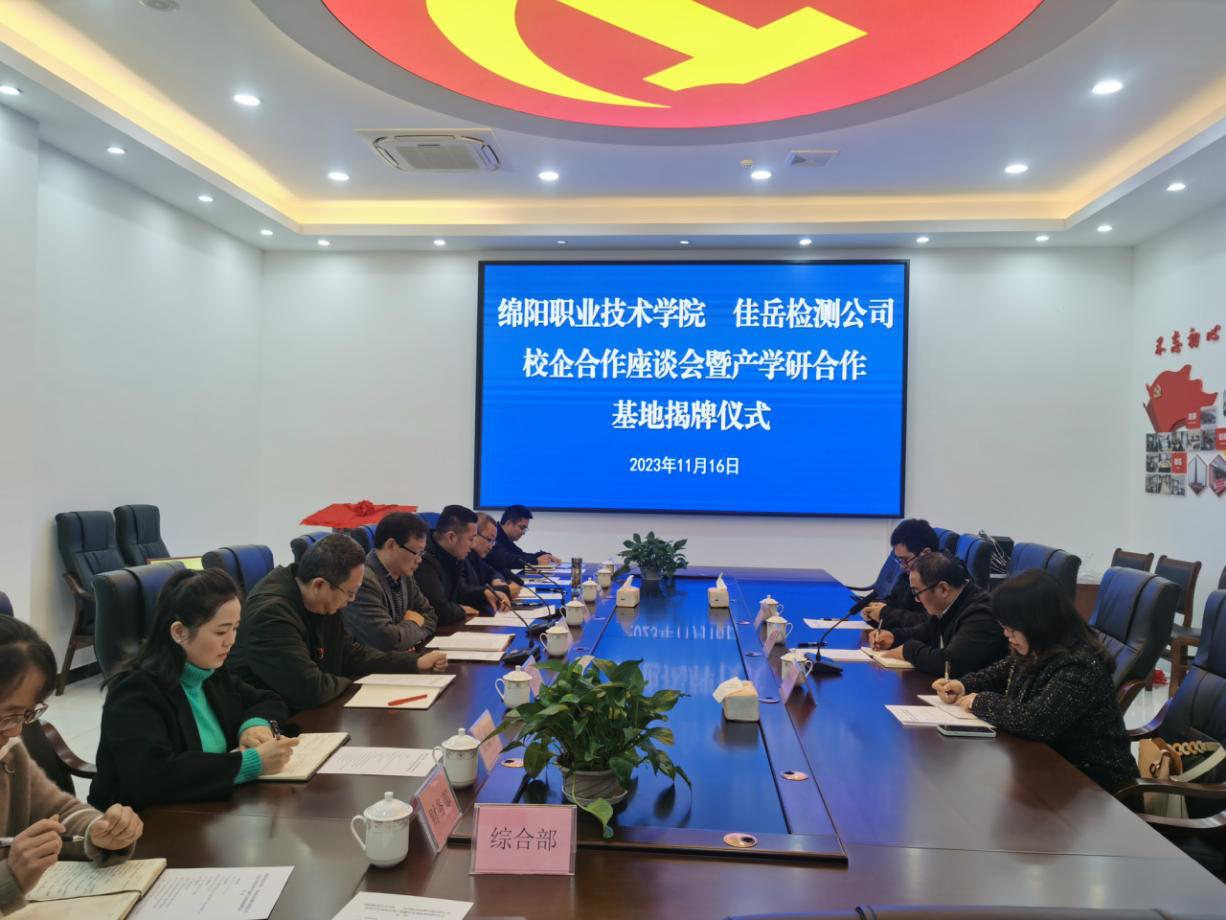 11月16日,雅安交建集團(tuán)所屬四川佳岳檢測(cè)咨詢有限公司與綿陽(yáng)職業(yè)技術(shù)學(xué)院舉行校企合作座談會(huì)暨產(chǎn)學(xué)研合作基地揭牌儀式,雙方就產(chǎn)學(xué)研實(shí)訓(xùn)基地建設(shè)、人才培養(yǎng)、外加劑研發(fā)生產(chǎn)等進(jìn)行深入交流。綿陽(yáng)職業(yè)技術(shù)學(xué)院材料與建造學(xué)院院長(zhǎng)賈陸軍,四川佳岳佳岳檢測(cè)咨詢有限公司執(zhí)行董事何銘新參加座談。