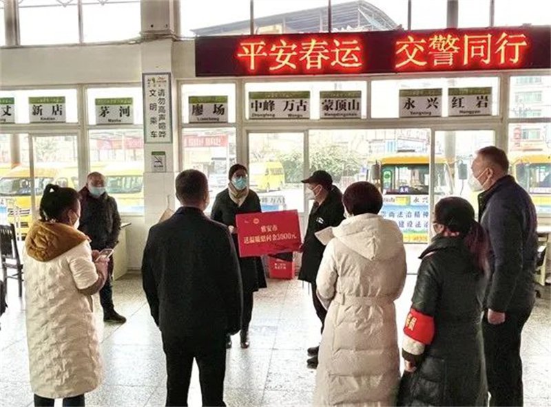 趙雅玲一行深入名山汽車(chē)客運(yùn)站,看望慰問(wèn)四川蜀通運(yùn)業(yè)有限責(zé)任公司名山分公司春運(yùn)工作人員,為一線職工送上新春祝福,殷切關(guān)心、仔細(xì)詢問(wèn)企業(yè)生產(chǎn)和職工工作和生活情況。