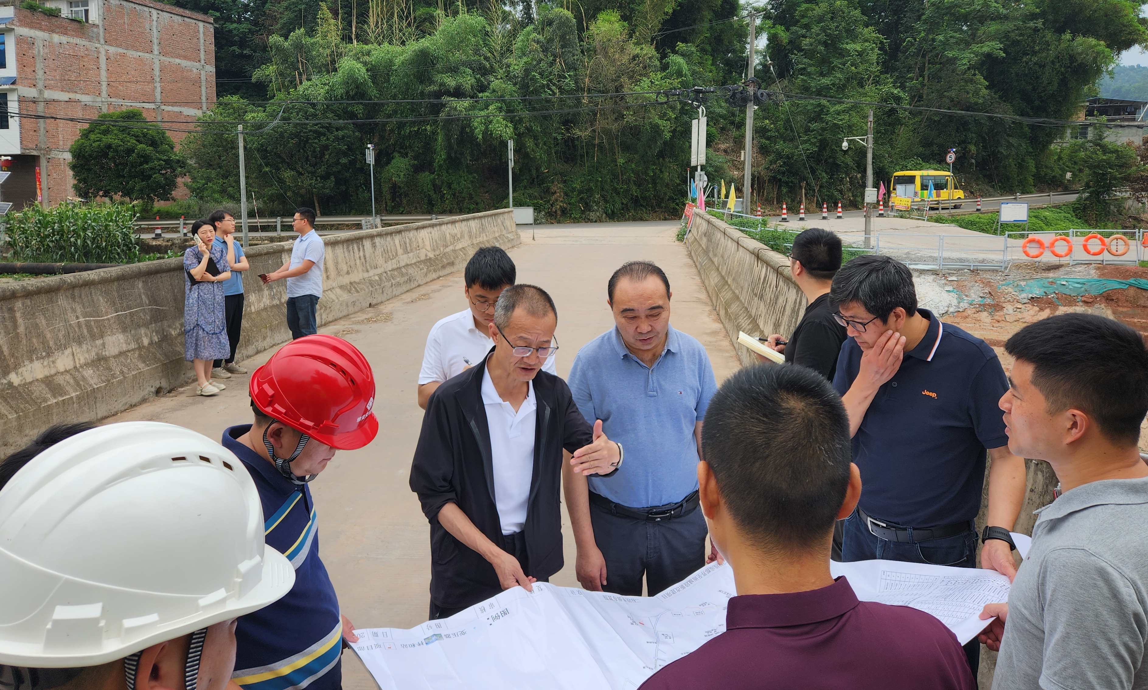 在項(xiàng)目施工現(xiàn)場,張橋詳細(xì)查看并聽取項(xiàng)目建設(shè)進(jìn)度、施工環(huán)境保障、全線征地拆遷以及土地、林地等工作推進(jìn)情況和當(dāng)前存在的困難問題。張橋強(qiáng)調(diào):一是要落實(shí)主體責(zé)任,強(qiáng)化責(zé)任擔(dān)當(dāng)。要進(jìn)一步樹牢“四個意識”,始終保持高度責(zé)任感和使命感,落實(shí)主體主責(zé)、主動擔(dān)當(dāng)作為,科學(xué)制定施工計劃,統(tǒng)籌安排人員、物資,確保項(xiàng)目按計劃工期推進(jìn),按時完成建設(shè)任務(wù)。二是要嚴(yán)守質(zhì)量底線,筑牢安全防線。要堅持工程建設(shè)和安全生產(chǎn)“兩手抓”“兩手硬”,嚴(yán)把質(zhì)量、安全關(guān)口,加快推動項(xiàng)目建設(shè)實(shí)現(xiàn)量的較快增長和質(zhì)的有效提升,助力“千億國企 品質(zhì)交建”品牌建設(shè),服務(wù)全市沖刺經(jīng)濟(jì)總量“三年跨千億”奮斗目標(biāo)。三是要加強(qiáng)項(xiàng)目管理,細(xì)化關(guān)愛措施。相關(guān)單位要切實(shí)肩負(fù)項(xiàng)目管理職能職責(zé),一方面要保證工程進(jìn)度、質(zhì)量和安全生產(chǎn),另一方面要研究員工關(guān)心關(guān)愛措施,提升一線施工人員工作條件和生活質(zhì)量,施工安排要充分考慮勞逸結(jié)合、合理排班、預(yù)防中暑,杜絕疲勞上崗,確保員工身體健康,增強(qiáng)員工幸福感、歸屬感。四是加強(qiáng)廉潔自律,弘揚(yáng)清風(fēng)正氣。各參建單位要帶頭踐行反腐倡廉,加強(qiáng)廉潔自律,筑牢思想防線,從思想上固本培元,提高黨性覺悟,營造清風(fēng)正氣氛圍,確保拒腐防變。