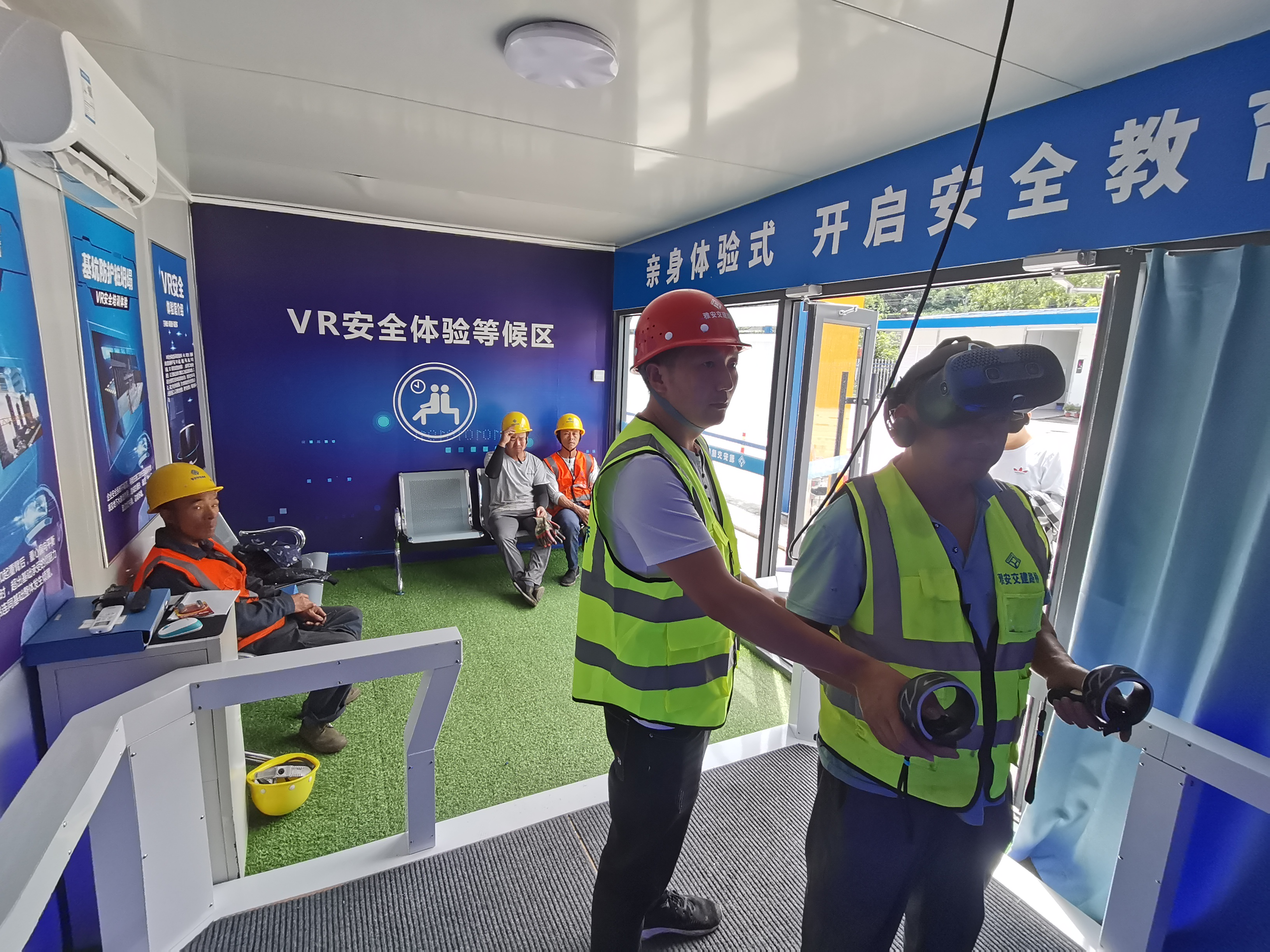 針對各在建項目勞務施工人員占大多數(shù)且安全意識薄弱、自我保護意識不足實際,路橋公司結(jié)合開展“安全生產(chǎn)月”系列活動,分批次組織各在建項目作業(yè)人員進行安全VR體驗培訓,利用VR技術打造1:1的虛擬培訓場景,將抽象的理論知識變得直觀形象,受訓者以第一視角“親歷”高空作業(yè)、高空塔吊、機械操作等危險場景,帶來高度真實感的沉浸式體驗,切實讓工人在VR培訓中通過視覺、聽覺、觸覺反饋,形成強烈的心理震懾作用,讓現(xiàn)場施工作業(yè)人員最大限度增強安全防范意識。