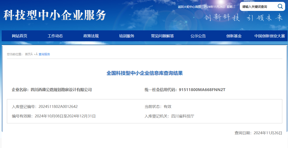 近日,四川省科學(xué)技術(shù)廳公布了本年度第五批入庫科技型中小企業(yè)名單,雅安交建集團(tuán)四川西康公路規(guī)劃勘察設(shè)計(jì)有限公司榮獲“國家級科技型中小企業(yè)”稱號,標(biāo)志著公司在科技創(chuàng)新道路上邁向了新的高度。