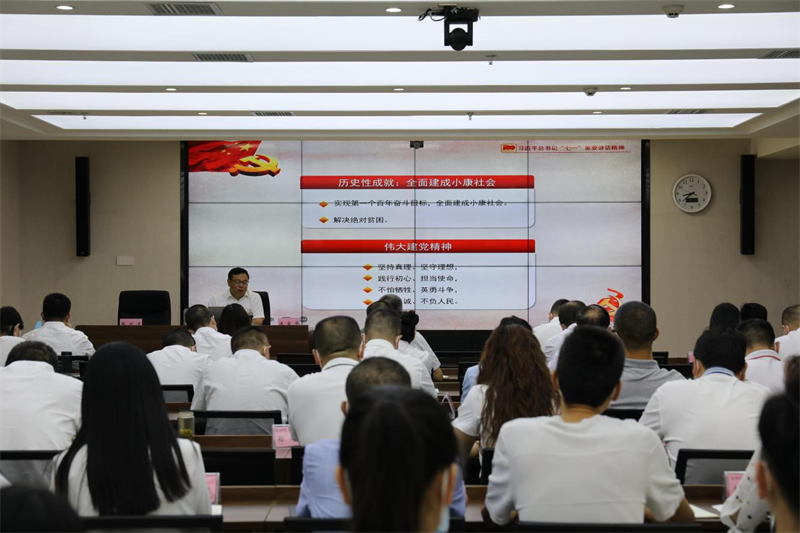 8月6日,集團(tuán)黨委書(shū)記、董事長(zhǎng)漆家華對(duì)集團(tuán)黨員、干部進(jìn)行了“學(xué)習(xí)習(xí)近平總書(shū)記七一重要講話、貫徹省委九次全會(huì)、市委四屆十次全會(huì)精神”集中宣講。