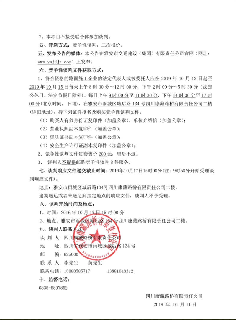 雅安市西入口整治與形象提升改造項(xiàng)目路面工程施工勞務(wù) 競爭性談判公告