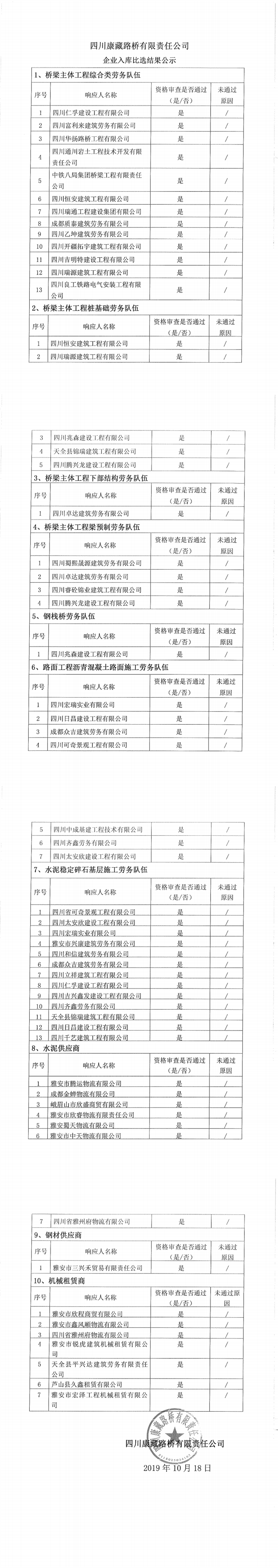 四川康藏路橋有限責任公司企業(yè)入庫比選結果公示