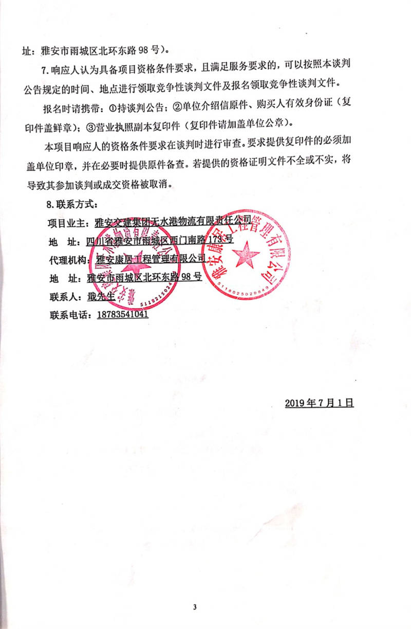 雅安交建集團無水港物流有限責任公司雅安市無水港建設項目(一期)場平工程監(jiān)理競爭性談判公告
