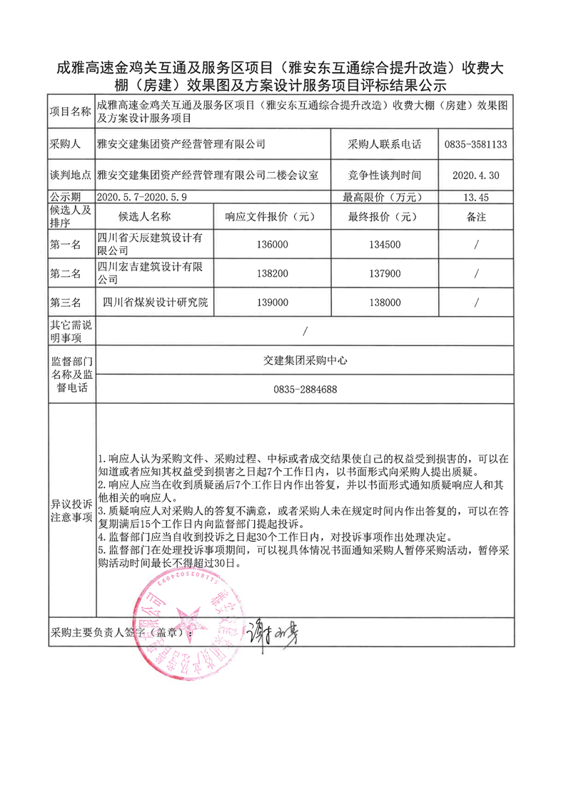 雅安交建集團(tuán)大興交通開(kāi)發(fā)有限公司雅安大興南綜合交通樞紐(TOD)項(xiàng)目臨建及場(chǎng)地平整工程項(xiàng)目評(píng)標(biāo)結(jié)果公示
