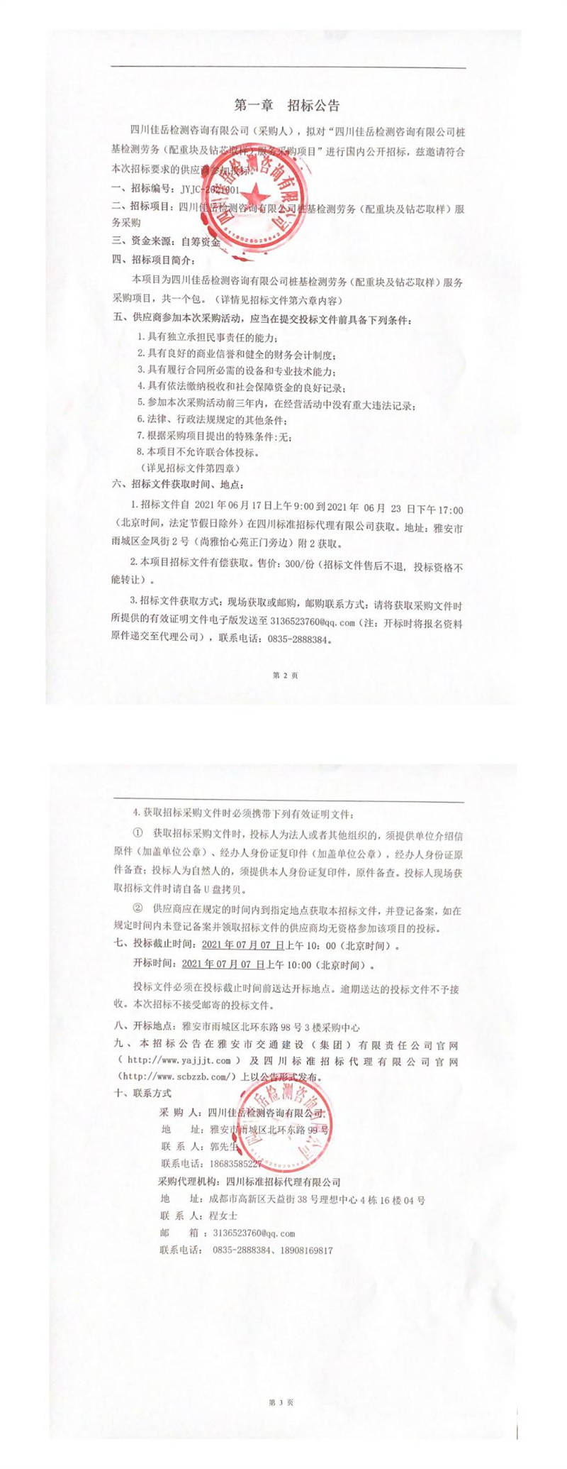四川佳岳檢測(cè)咨詢(xún)有限公司樁基檢測(cè)勞務(wù)(配重塊及鉆芯取樣)服務(wù)采購(gòu)招標(biāo)公告