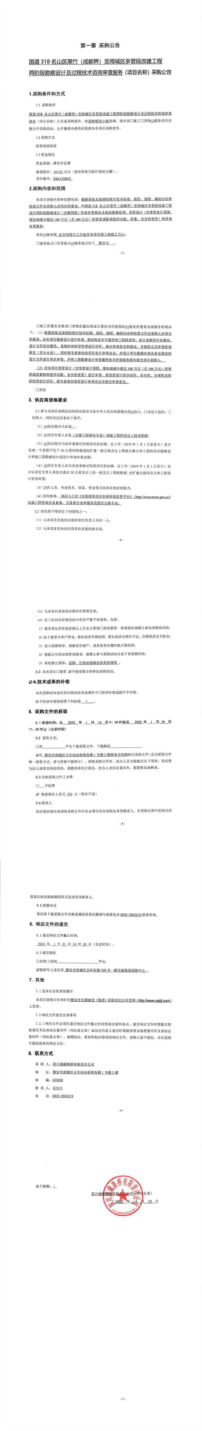 四川康藏路橋有限責(zé)任公司國道318名山區(qū)黑竹(成都界)至雨城區(qū)多營(yíng)段改建工程兩階段勘察設(shè)計(jì)及過程技術(shù)咨詢審查服務(wù)采購公告