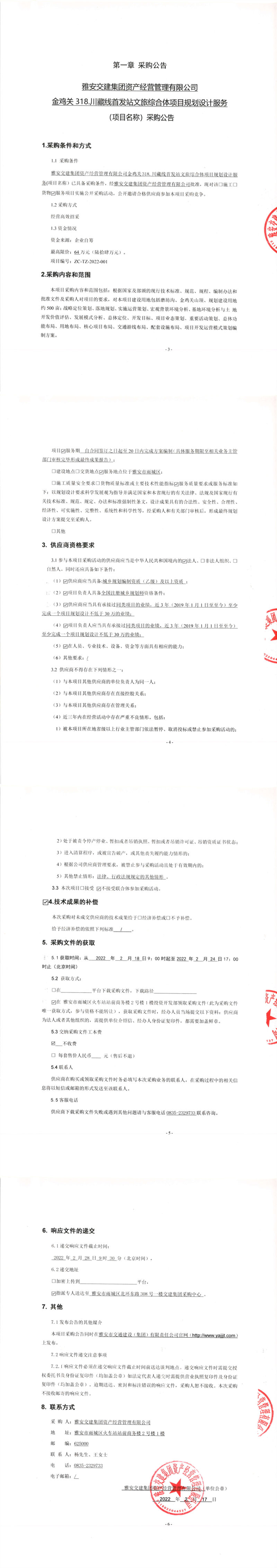 雅安交建集團資產(chǎn)經(jīng)營管理有限公司金雞關(guān)318.川藏線首發(fā)站文旅綜合體項目規(guī)劃設計服務采購公告