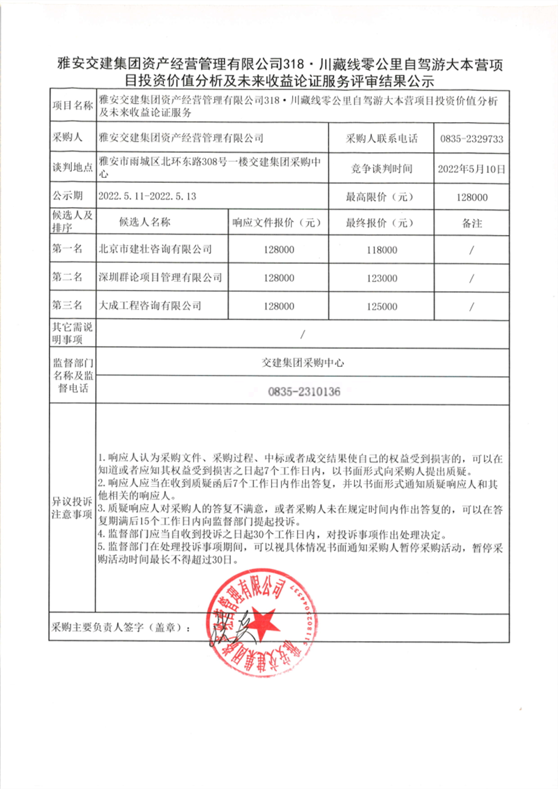 雅安交建集團(tuán)資產(chǎn)經(jīng)營(yíng)管理有限公司318·川藏線(xiàn)零公里自駕游大本營(yíng)項(xiàng)目投資價(jià)值分析及未來(lái)收益論證服務(wù)評(píng)審結(jié)果公示
