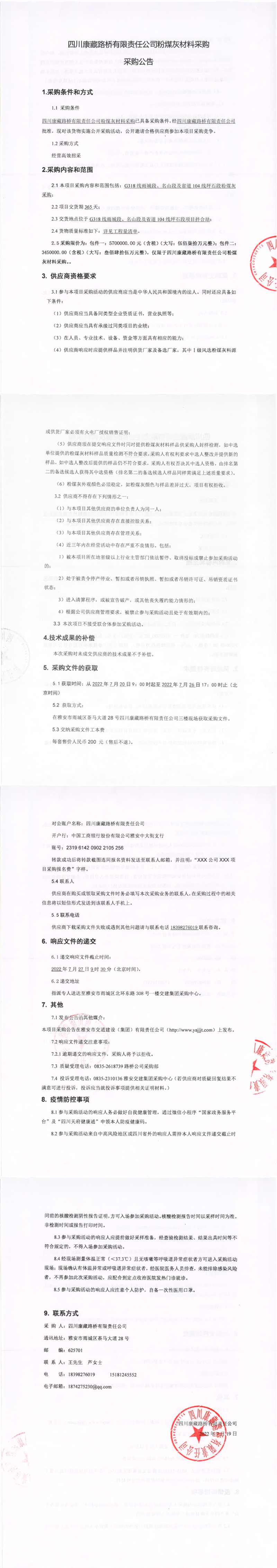 四川康藏路橋有限責(zé)任公司粉煤灰材料采購采購公告