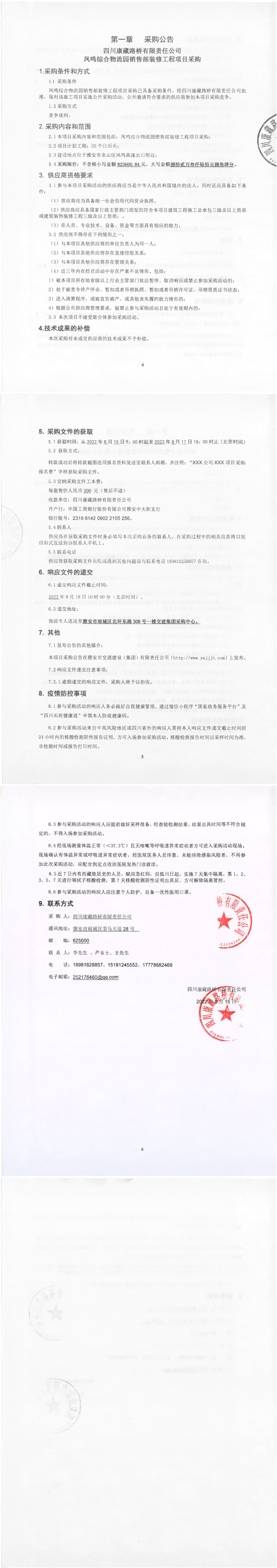 四川康藏路橋有限責(zé)任公司鳳鳴綜合物流園銷售部裝修工程項(xiàng)目采購公告