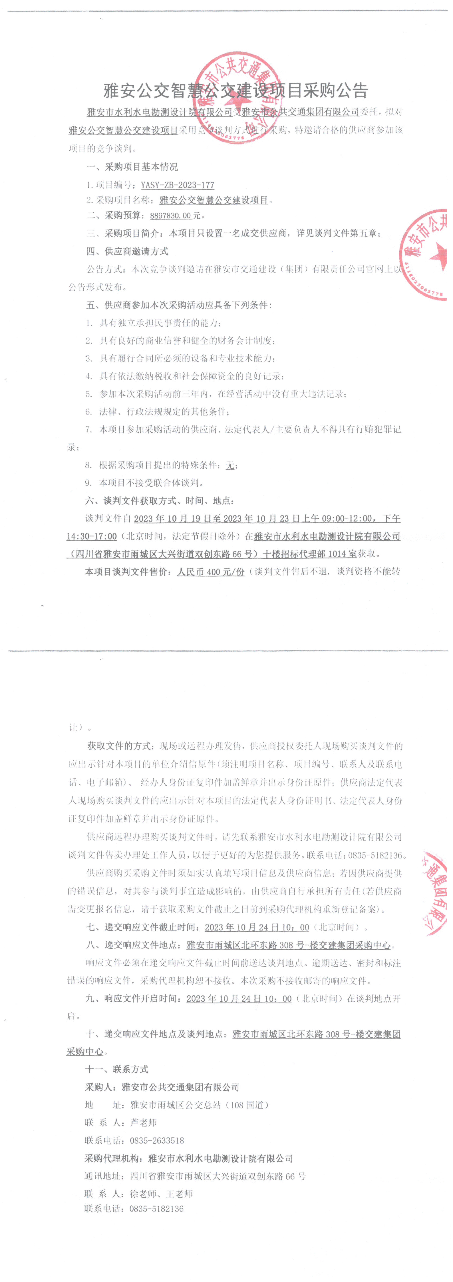 雅安市公共交通集團(tuán)有限公司雅安公交智慧公交建設(shè)項(xiàng)目采購公告