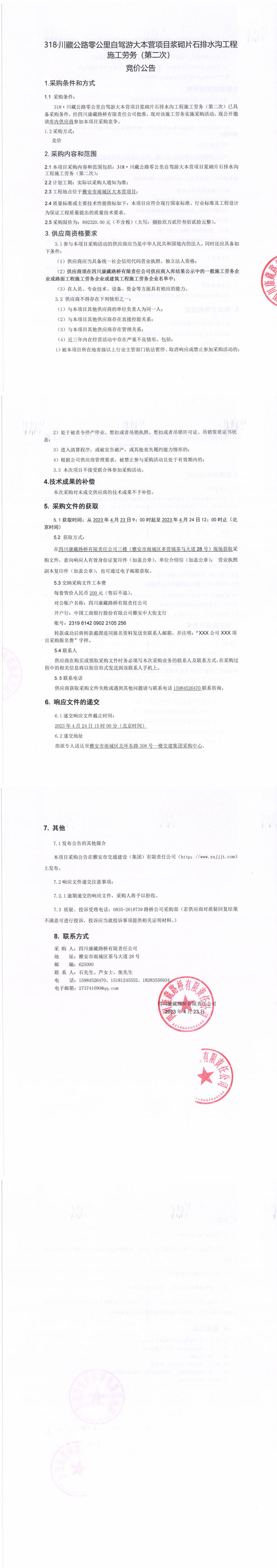 四川康藏路橋有限責(zé)任公司318·川藏公路零公里自駕游大本營(yíng)項(xiàng)目漿砌片石排水溝工程施工勞務(wù)(第二次)采購(gòu)公告