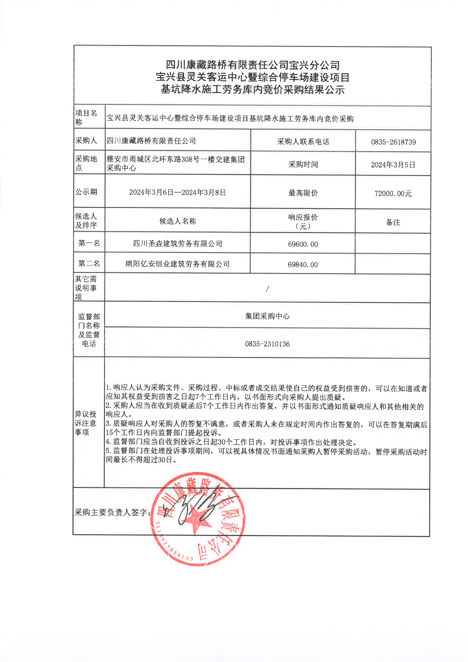 四川康藏路橋有限責任公司寶興分公司寶興縣靈關(guān)客運站中心暨綜合停車場建設(shè)項目基坑降水施工勞務庫內(nèi)競價采購結(jié)果公示