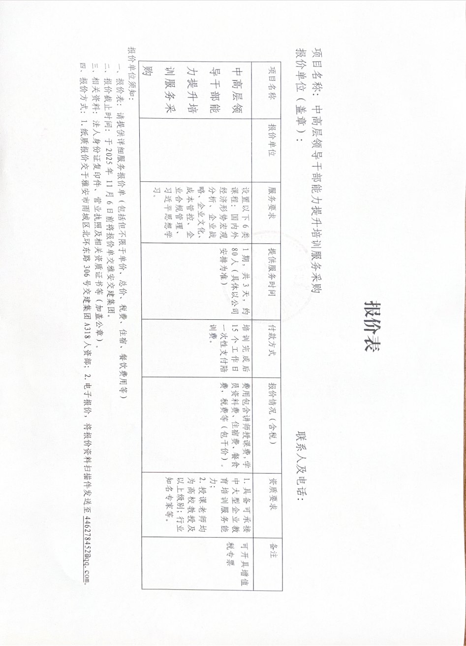 中高層領(lǐng)導(dǎo)干部能力提升培訓(xùn)服務(wù)采購詢價(jià)邀請(qǐng)