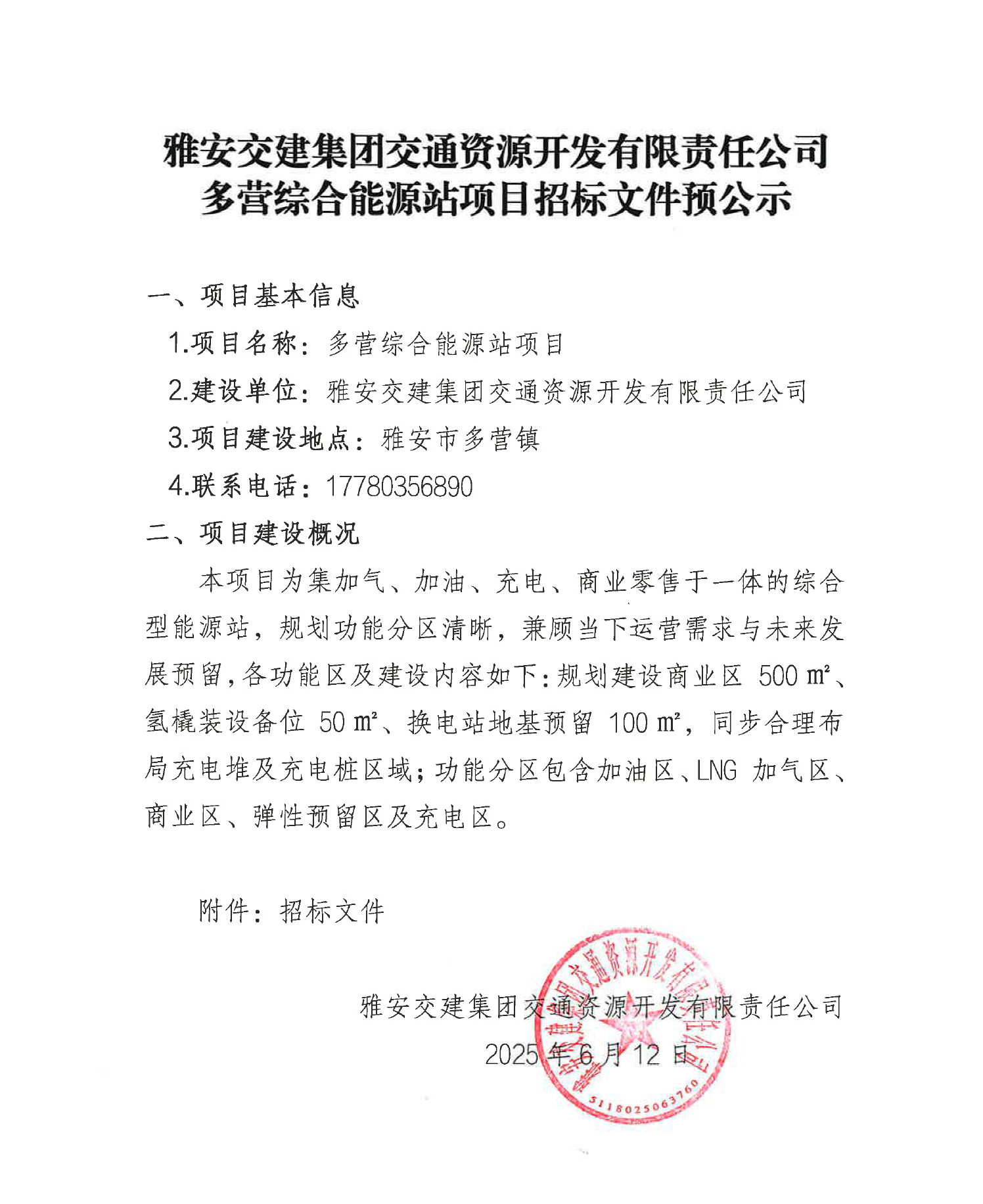 雅安交建集團(tuán)交通資源開發(fā)有限責(zé)任公司多營綜合能源站項(xiàng)目招標(biāo)文件預(yù)公示
