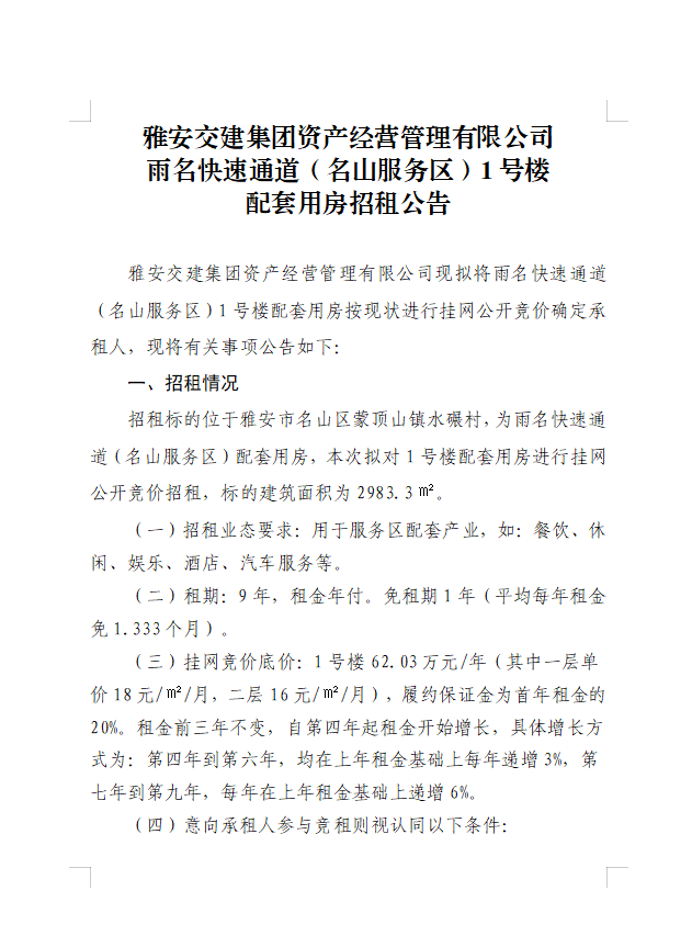 ÑŰ²½»½¨¼¯ˆFÙY®a(ch¨£n)½›(j¨©ng) I¹ÜÀíÓÐÏÞ¹«Ë¾ÓêÃû¿ìËÙͨµÀ£¨Ãûɽ·þ„Õ(w¨´)…^(q¨±)£©1Ì–˜ÇÅäÌ×Ó÷¿ÕÐ×⹫¸æ