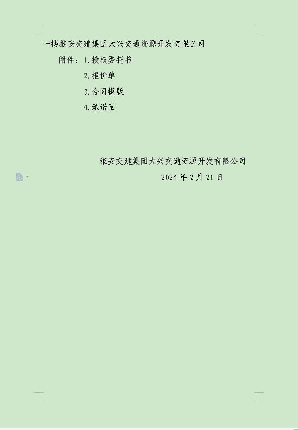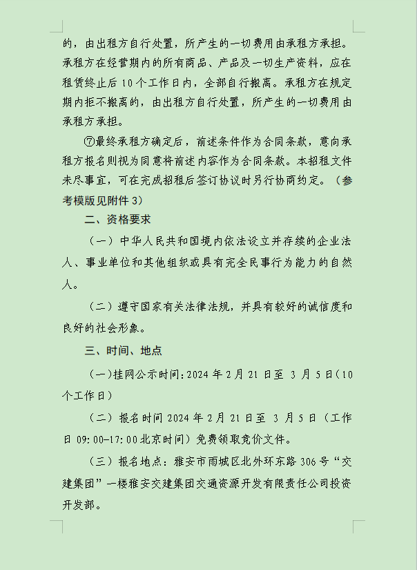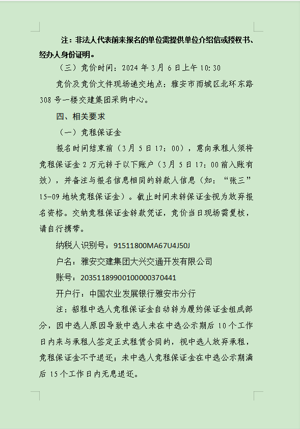 雅安交建集團(tuán)大興交通資源開發(fā)有限公司關(guān)于雨城區(qū)姚橋片區(qū)15-09地塊2024年競價招租的公告