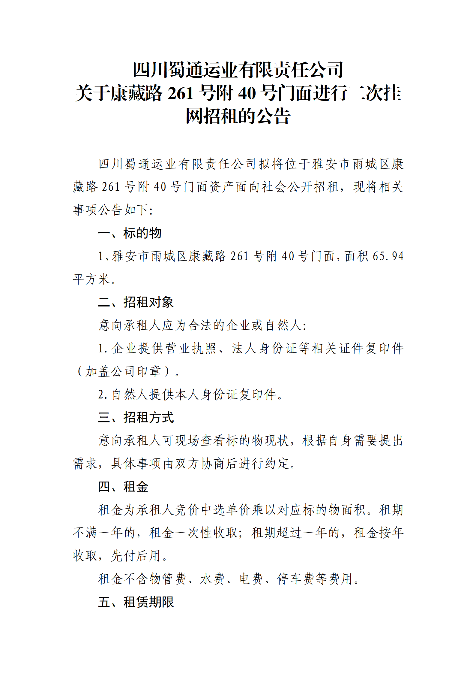 ËÄ´¨Êñͨß\˜I(y¨¨)ÓÐÏÞØŸ(z¨¦)Èι«Ë¾ êP(gu¨¡n)ÓÚ¿µ²ØÂ·261Ì–¸½40Ì–éTÃæßM(j¨¬n)Ðжþ´Î’ì¾W(w¨£ng)ÕÐ×âµÄ¹«¸æ