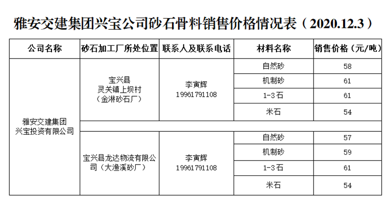 ÑŰ²½»½¨¼¯ˆF(tu¨¢n)ÅdŒš¹«Ë¾É°Ê¯¹ÇÁÏäNÊÛƒr¸ñÇé›r±í£¨2020.12.3£©