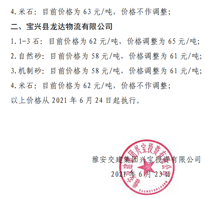 ÑŰ²½»½¨¼¯ˆF(tu¨¢n)ÔÆÊ¯¹«Ë¾É°Ê¯¹ÇÁÏäN(xi¨¡o)ÊÛƒr(ji¨¤)¸ñÇé›r±í£¨2021.6.24£©