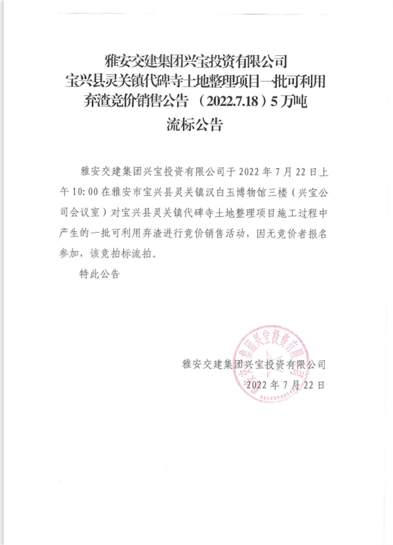 興寶公司流標(biāo)公告7.18(5萬噸)
